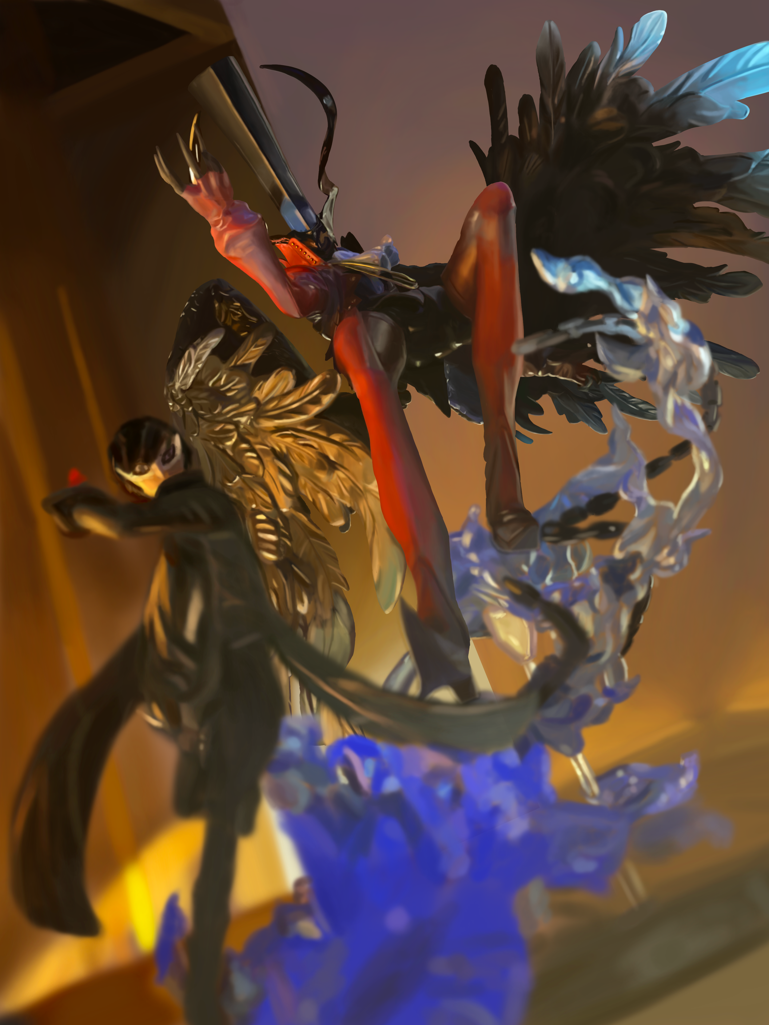 A still life digital painting depicting figures of characters from the game Persona 5.